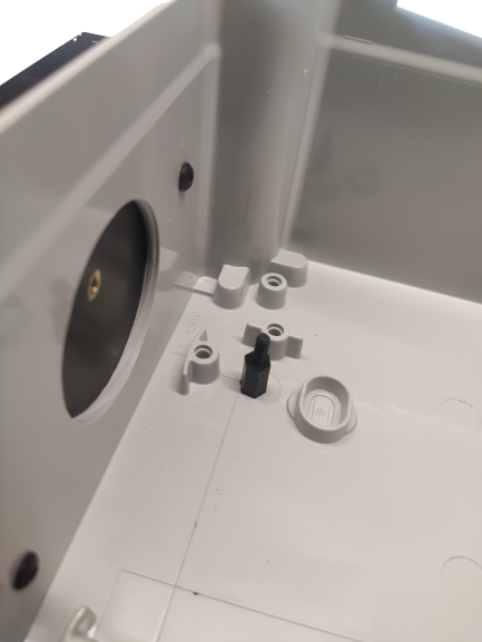 Pour ajuster la hauteur de la carte de sortie, un plot en plastique de 10 mm de haut est installé à l’aide d’une vis M3 en plastique.