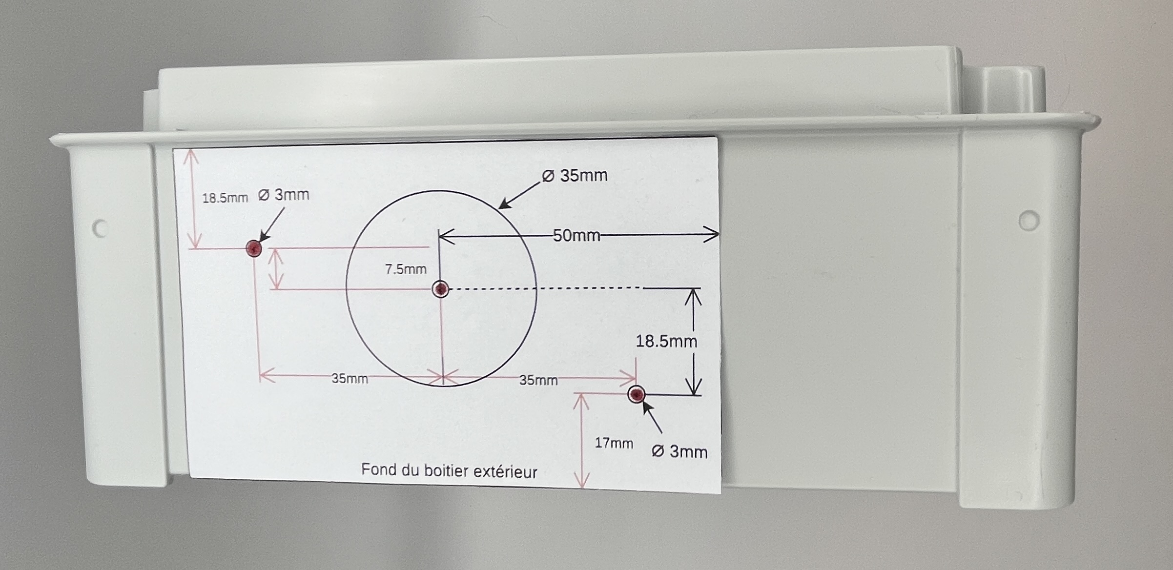 Le boîtier doit être percé de trois trous : deux pour la fixation du dissipateur sur le boîtier et un au milieu pour laisser de la place au triac.