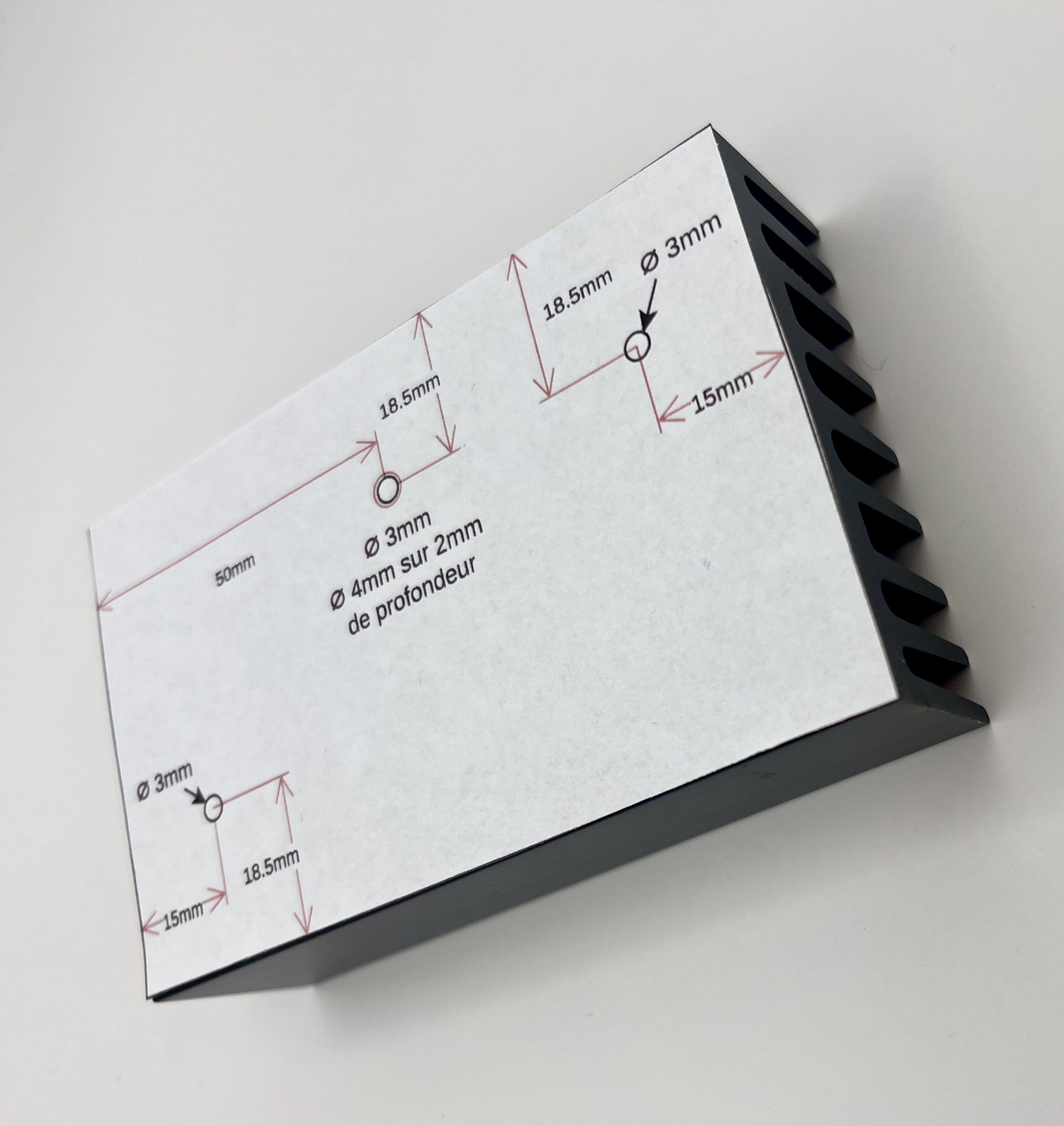 Le gabarit sera placé sur la face pleine du dissipateur.