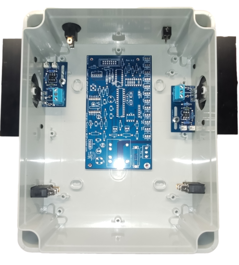 Dissipateurs fixés solidement sur les côtés verticaux du boîtier ☐ Triacs montés sur les dissipateurs avec pâte thermique ☐ Tous les trous de montage percés à 3 mm de diamètre ☐ Plots 10 mm installés avec vis M3 plastique ☐ Hauteur des cartes de sortie correcte (alignement avec dissipateur) ☐ Cartes de sortie se fixent solidement sans forcer ☐ Pas d’interférence avec les dissipateurs ou autres composants